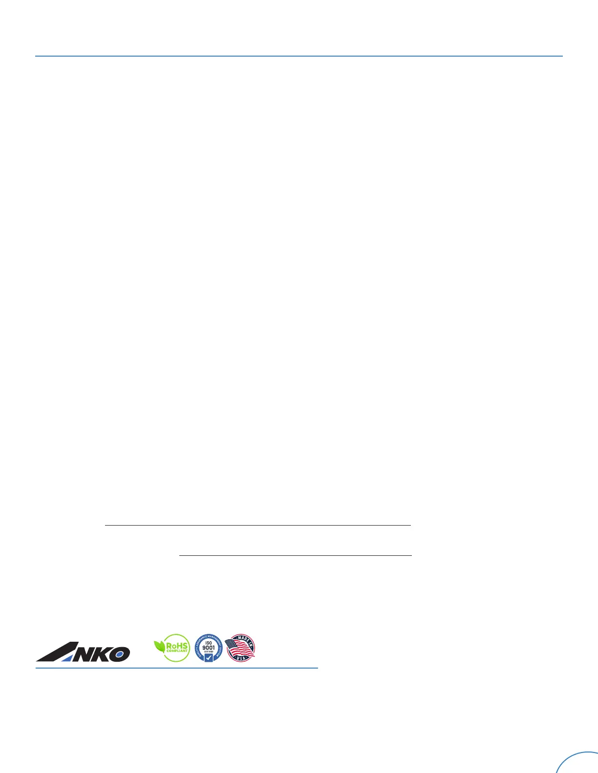 our factory. All replaced parts shall become the property of ANKO. No repair or replacement will