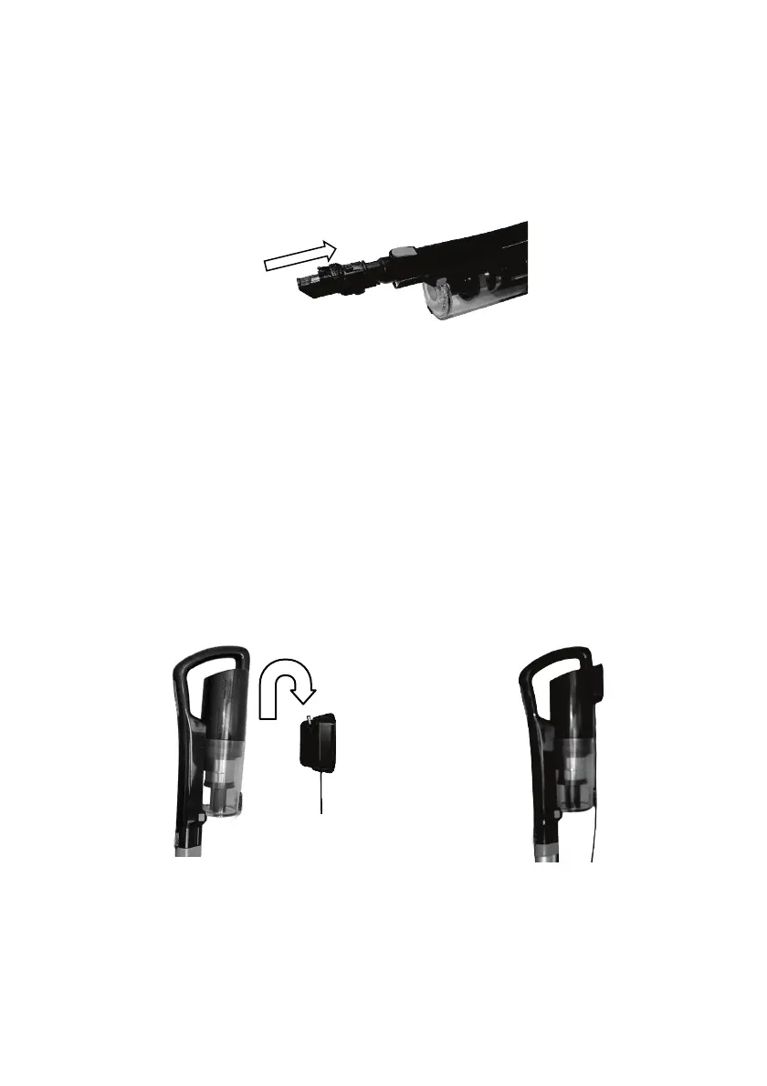 For charging, place the vacuum cleaner on the wall hanging hook ensuring it
