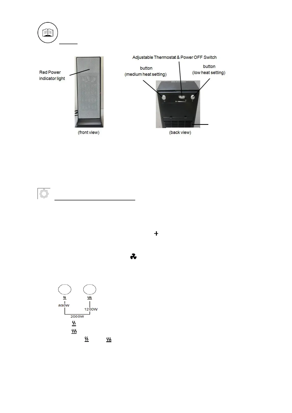 • Press both ( ) and ( ) buttons, heater on the highest heat setting 2000W.
