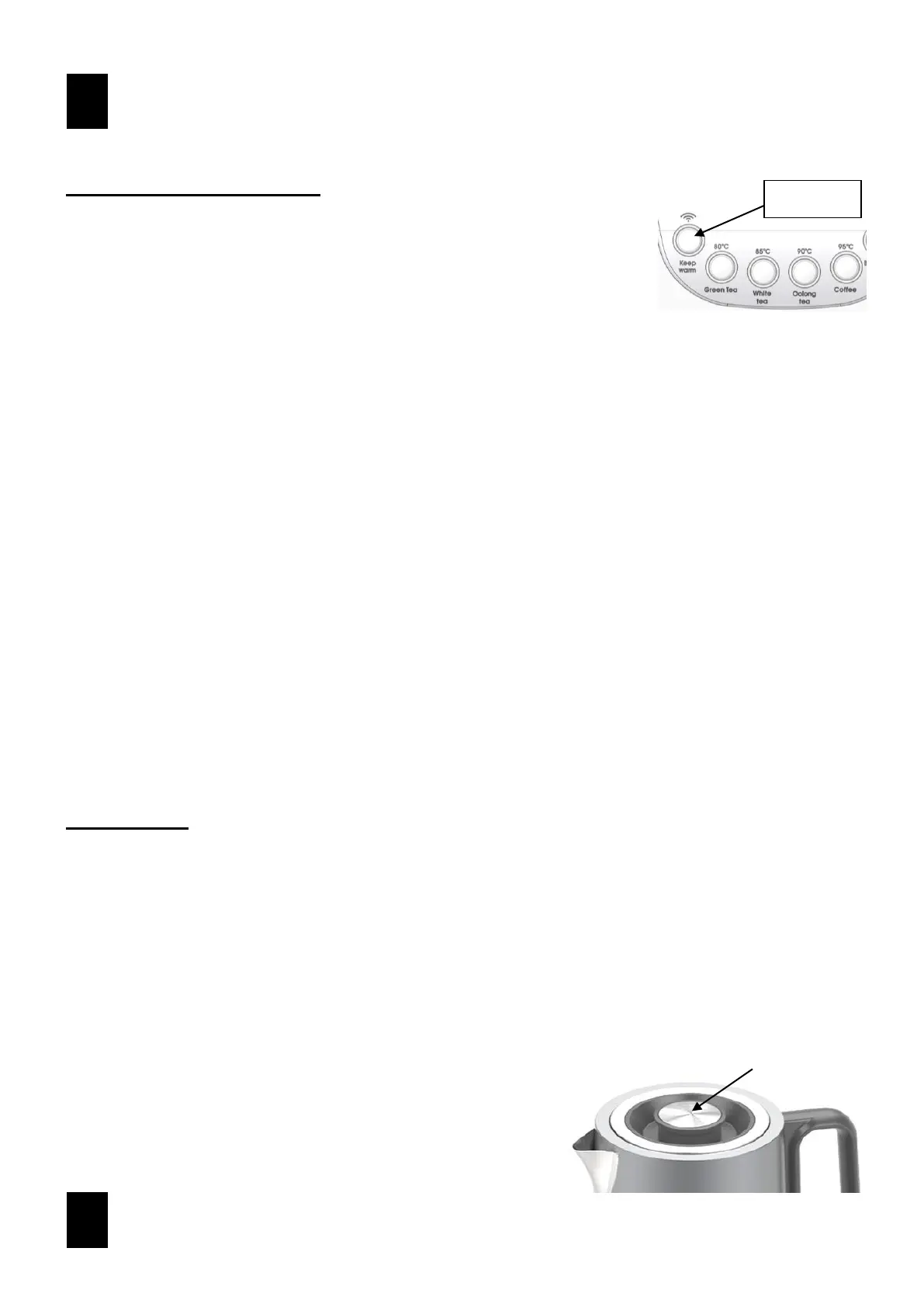 The kettle and its lid become hot while in use. Do not touch.