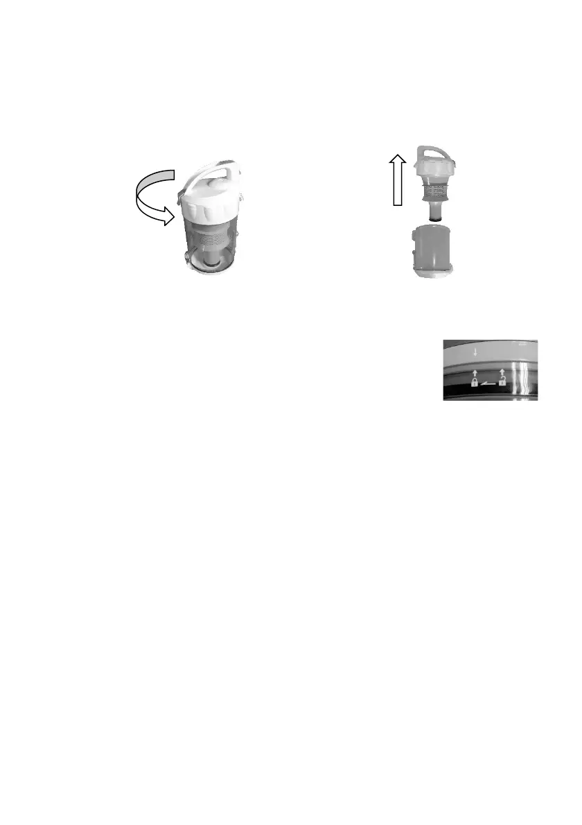 To remove, hold the dust canister body firmly and rotate the lid then