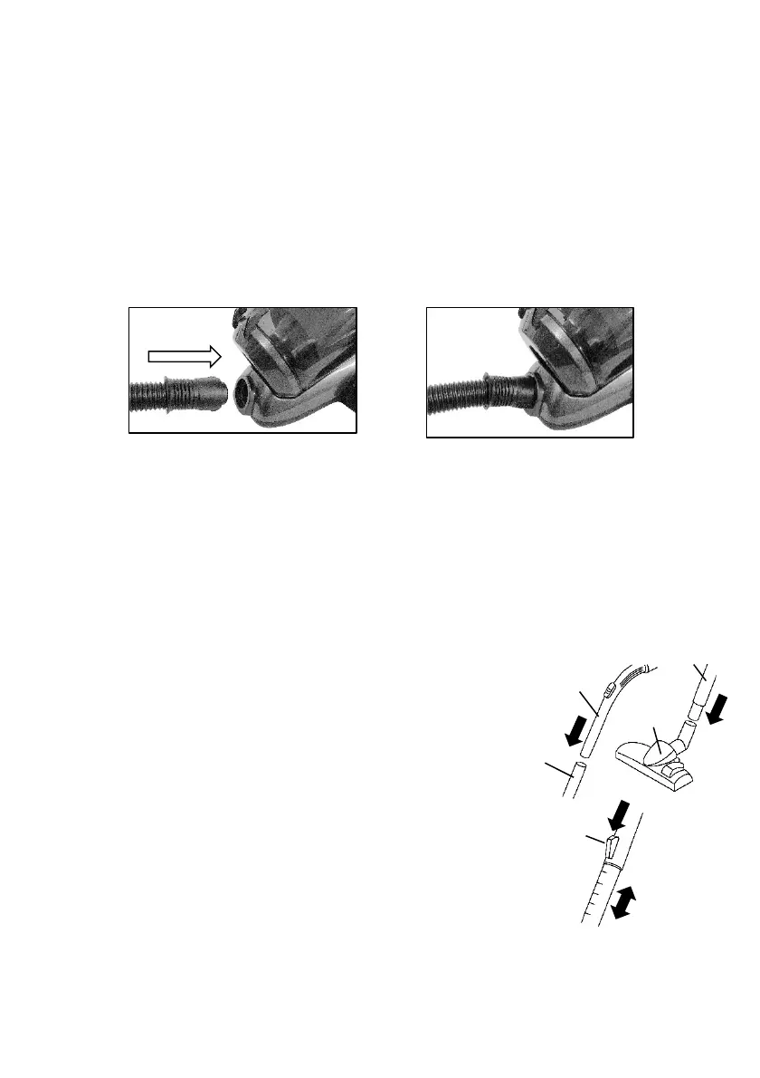 To remove the flexible hose from the vacuum cleaner, depress the locking