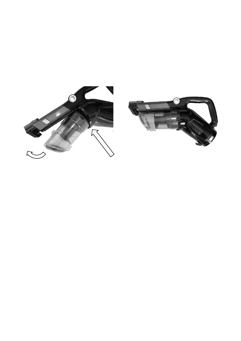 into the recess on the vacuum cleaner body and then swing the dust canister up