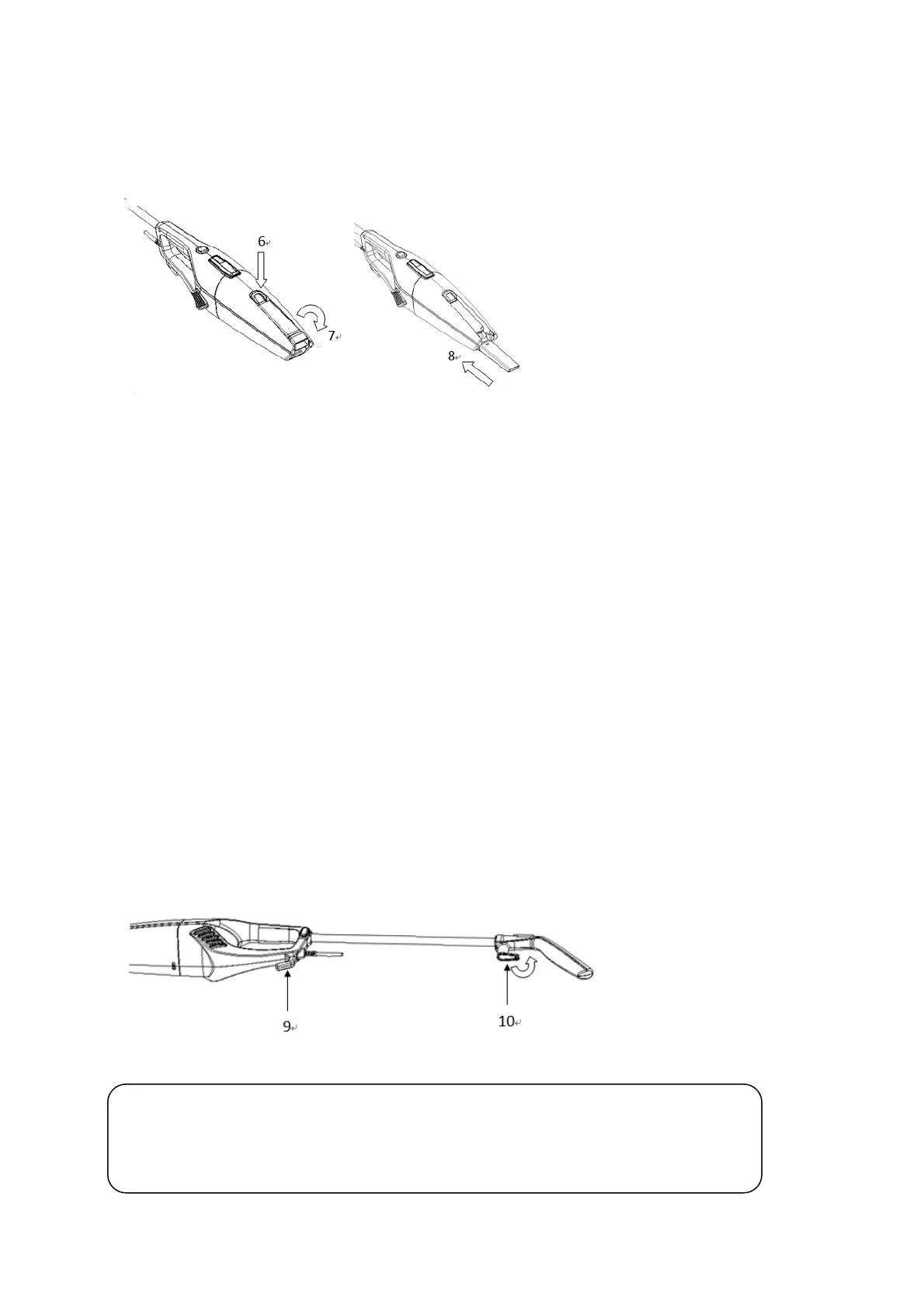 Pull back the tab (No. 6) to release the crevice tool and rotate it 180 degrees (No.7). Then