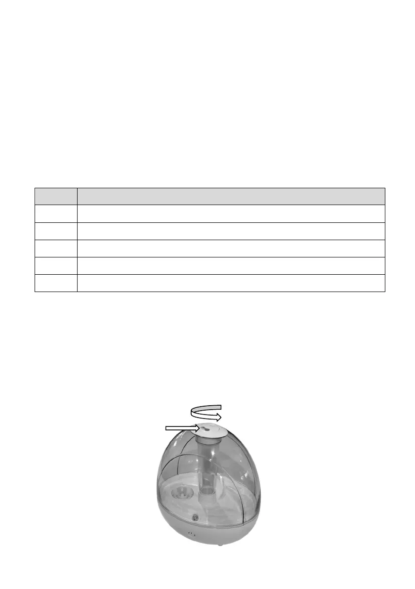 3 Press the On / Off Button again – High Mist Rate plus Night Light On