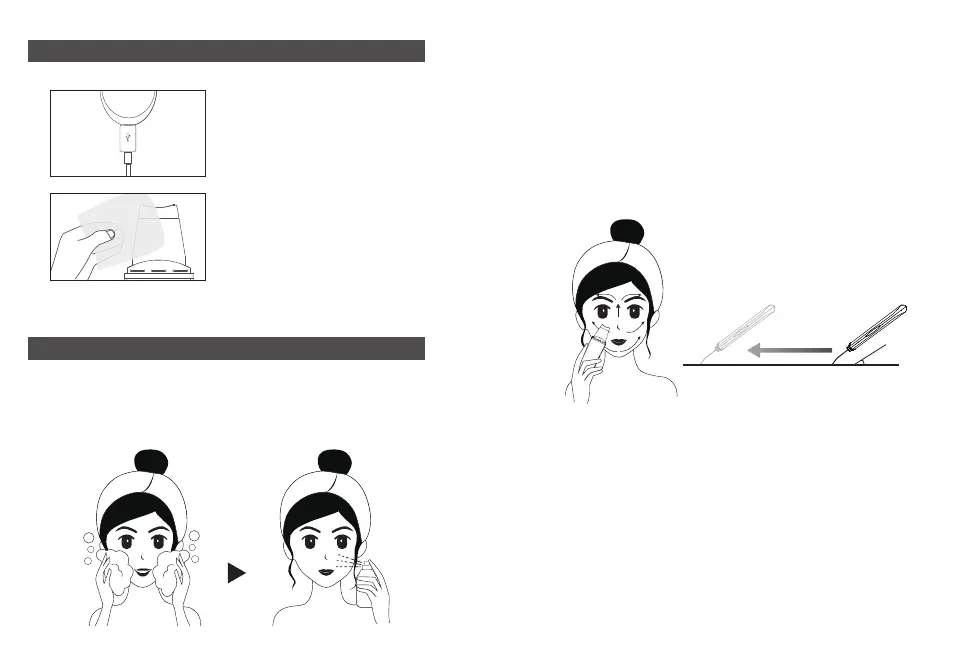 헤드는 피부의 동일한 부위에 오래 사용하지 마시고 이동시켜