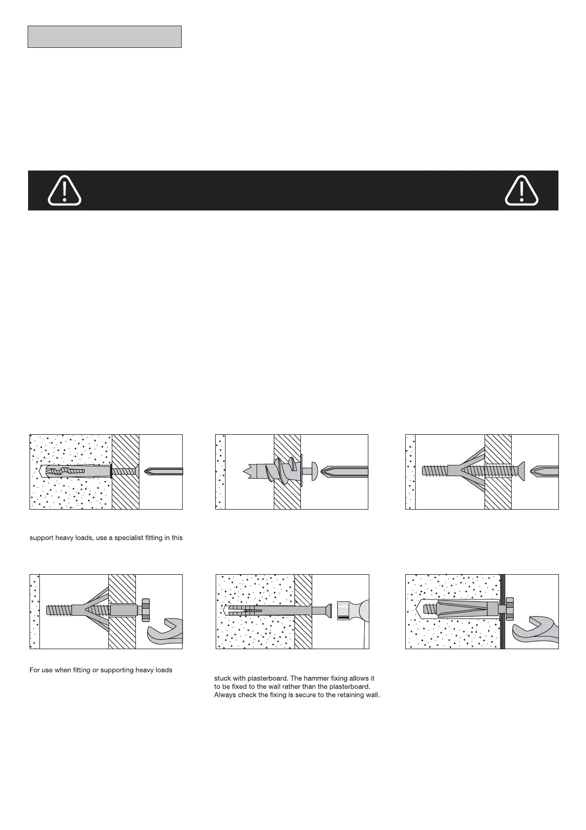 NOTE: Supplied wall plugs are only suitable f or use in masonry walls.