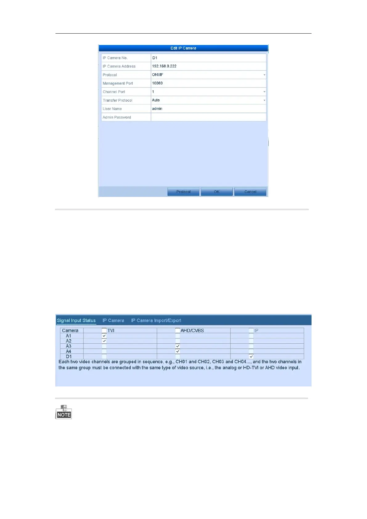 channels in the same group must be connected with the same type of video source, i.e., the analog or