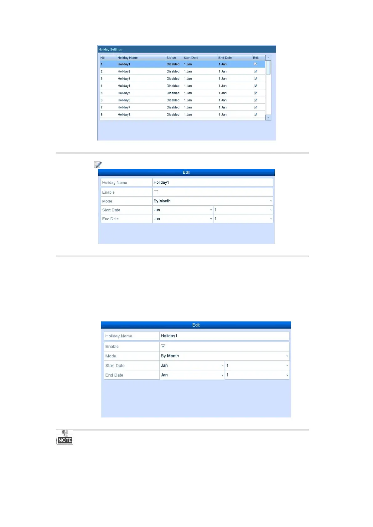 Figure 5. 16 Holiday Settings