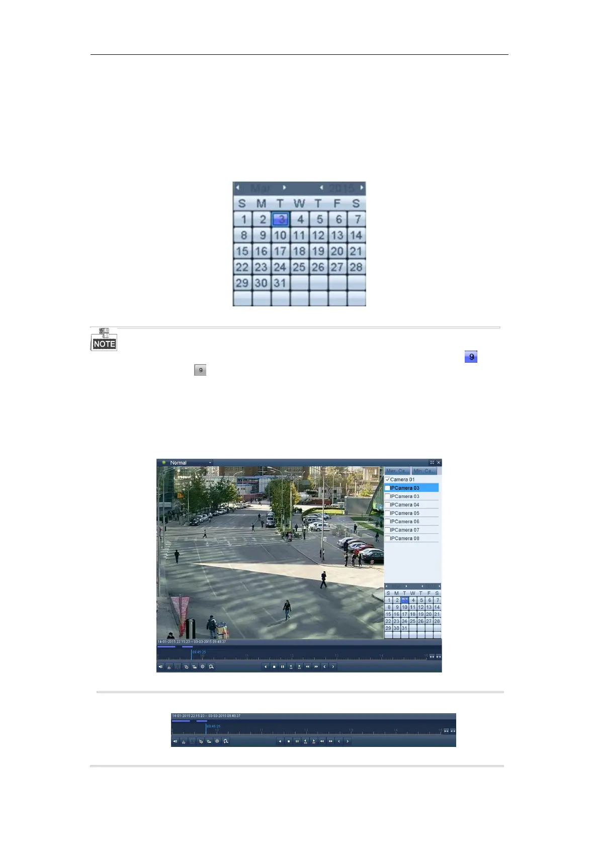 If there are record files for that camera in that day, in the calendar, the icon for that day is displayed as .