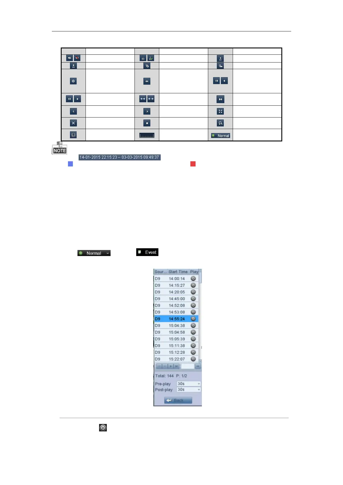 represents normal recording (manual or schedule); represents event recording (motion, alarm,