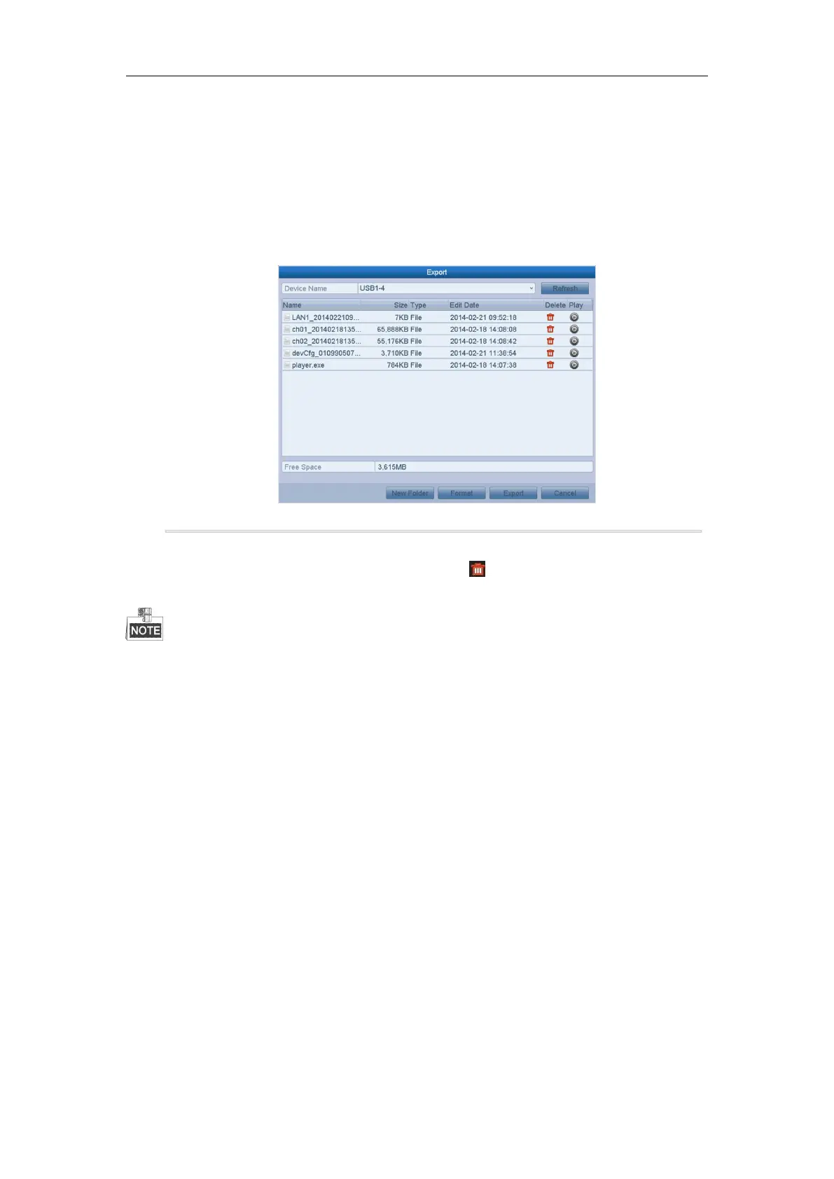 Select a record file or folder in the backup device and click button if you want to delete it.