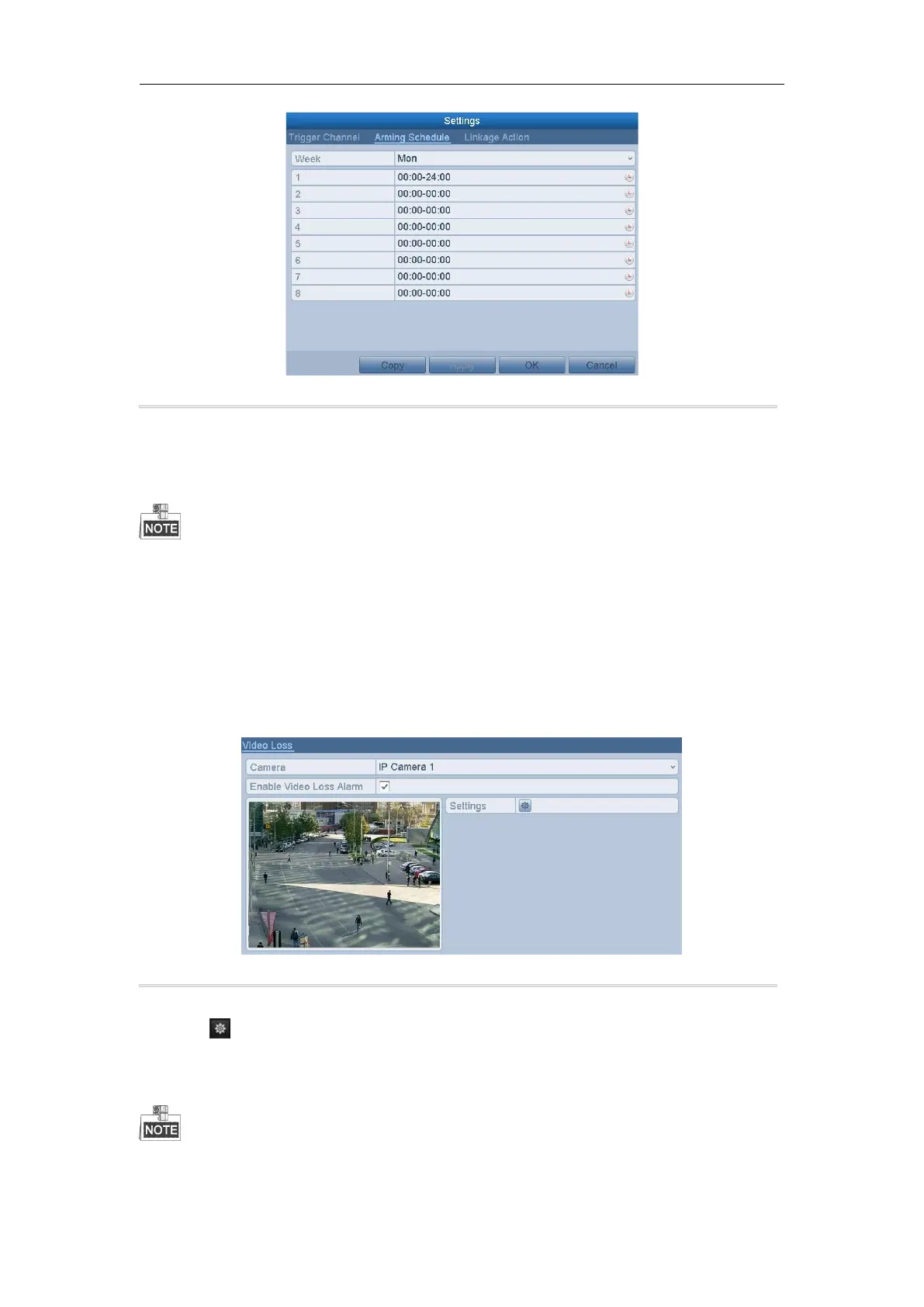 Check the checkbox of “Enable Video Loss Alarm”.