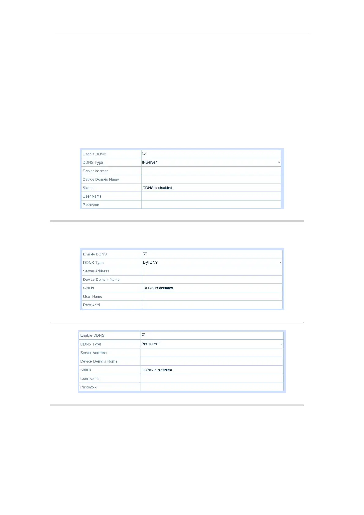 4. Select DDNS Type. Five different DDNS types are selectable: IPServer, DynDNS, PeanutHull, NO-IP and