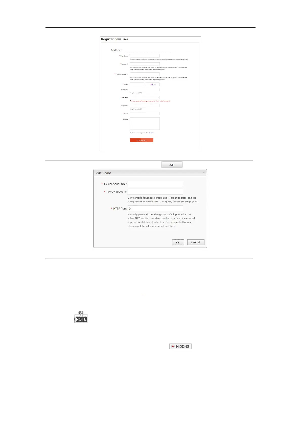 device via web browser or Client Software with the Device Domain Name (Device Name).