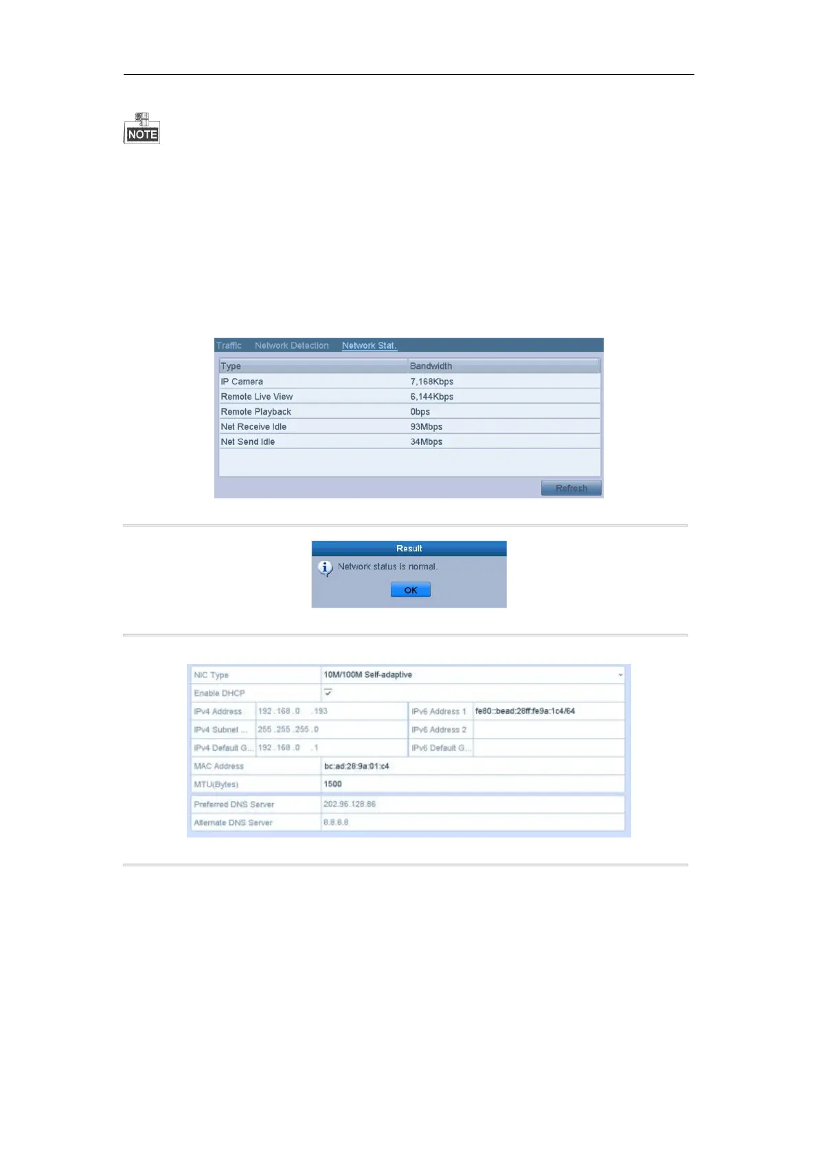 You can also check the network status and quick set the network parameters in this interface.