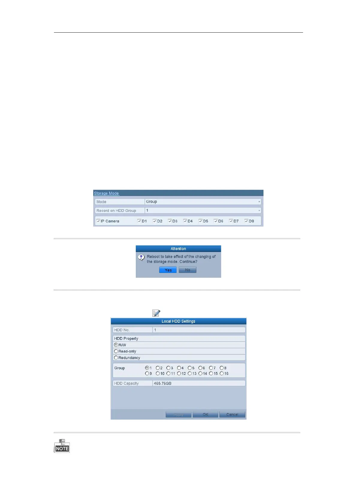 Multiple HDDs can be managed in groups. Video from specified channels can be recorded onto a particular HDD