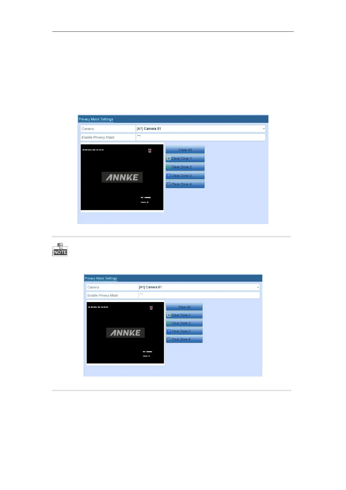 5. The configured privacy mask zones on the window can be cleared by clicking the corresponding Clear