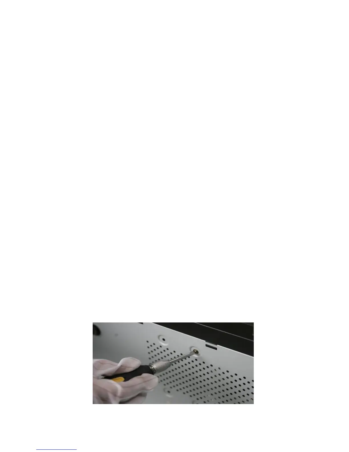 1. Remove the cover from the NVR by unfastening the screws on the rear and side