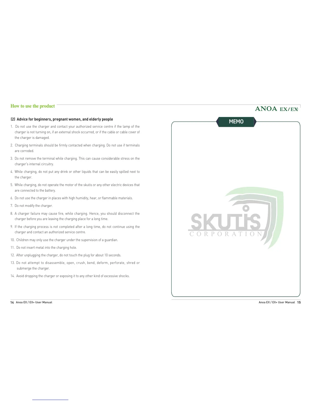 5. While charging, do not operate the motor of the skutis or any other electric devices that