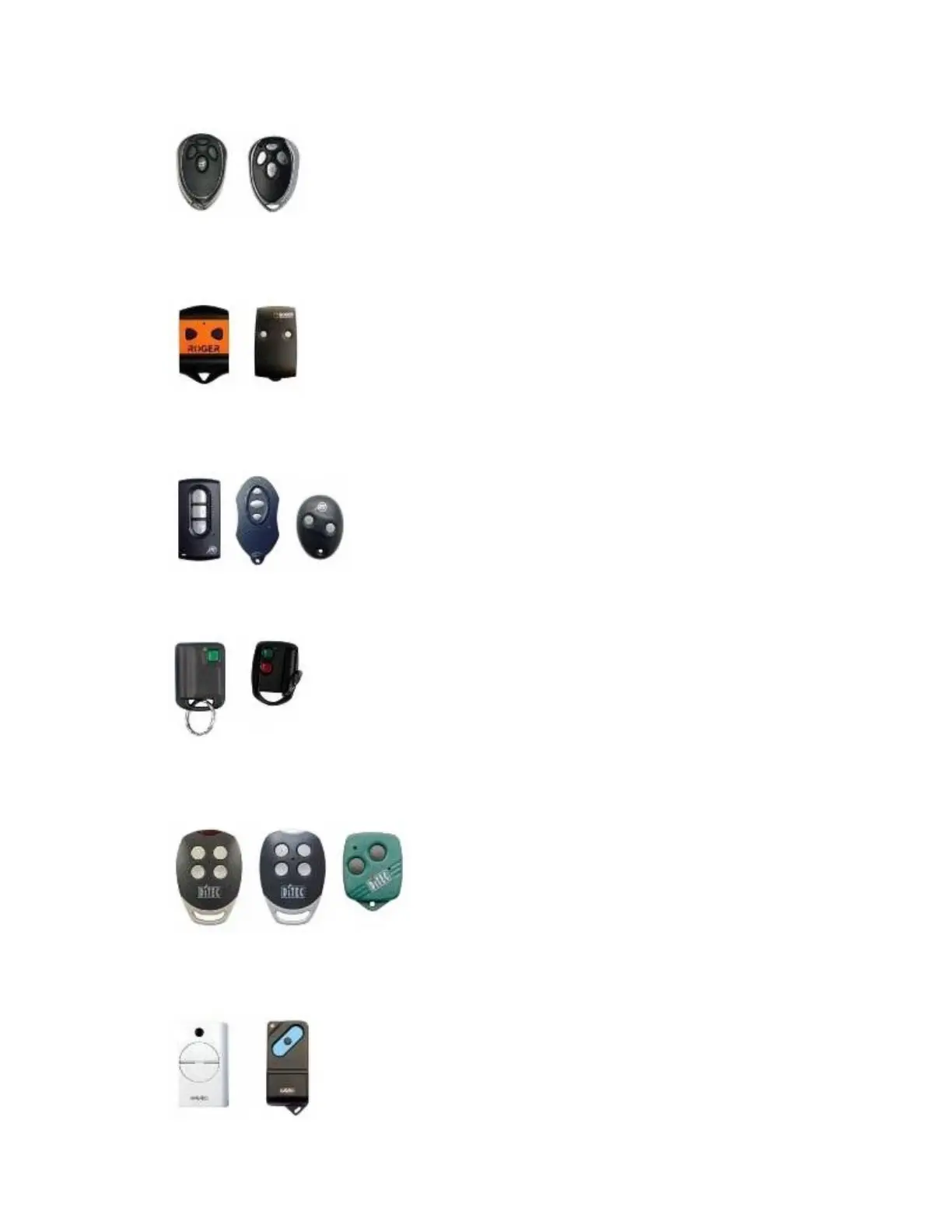 Anonymous RF Spyder - Further Supported Remote Controls; AN-MOTORS Remote Compatibility; ROGER Remote Compatibility; GSN Remote Compatibility