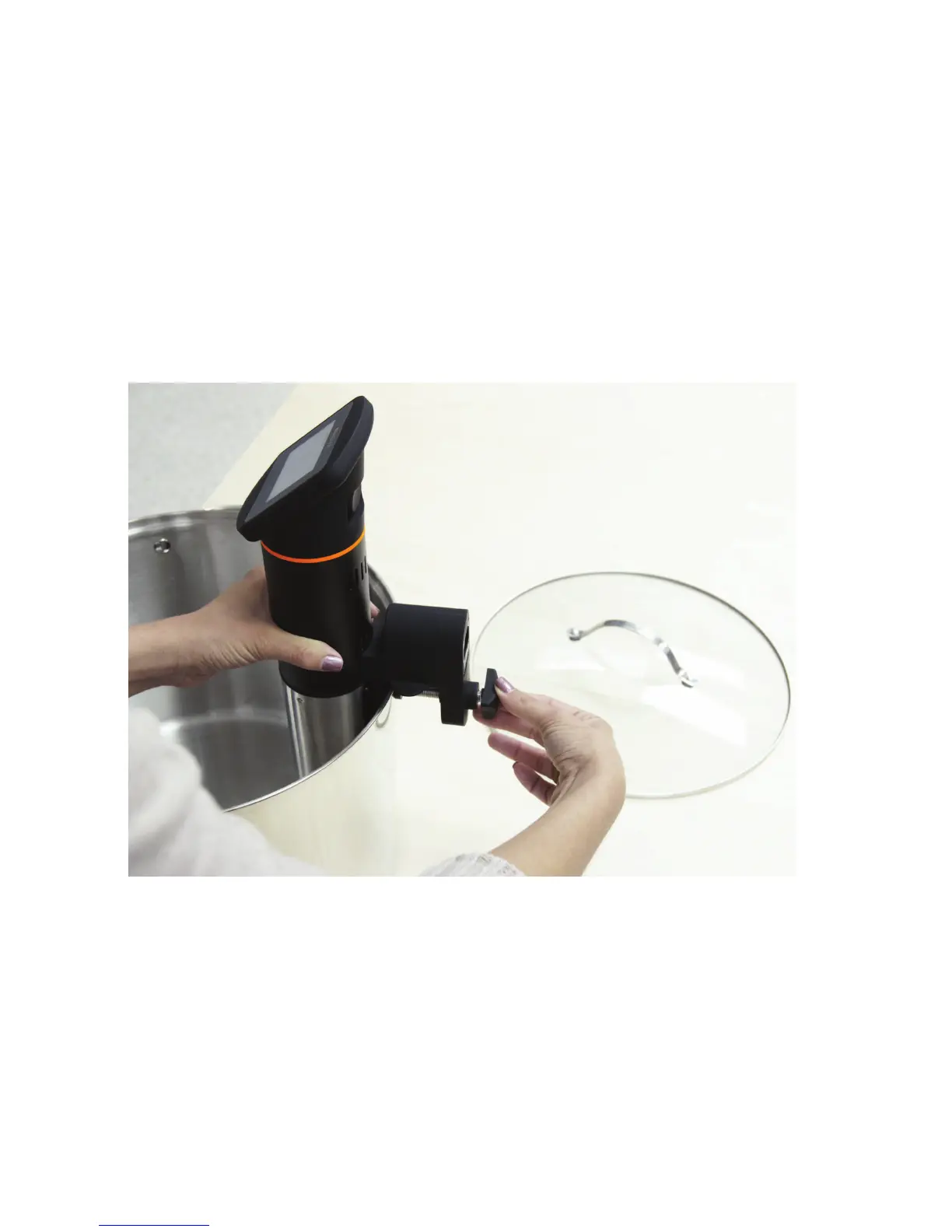 Place the Anova circulator on the side of your container and turn the clamp until
