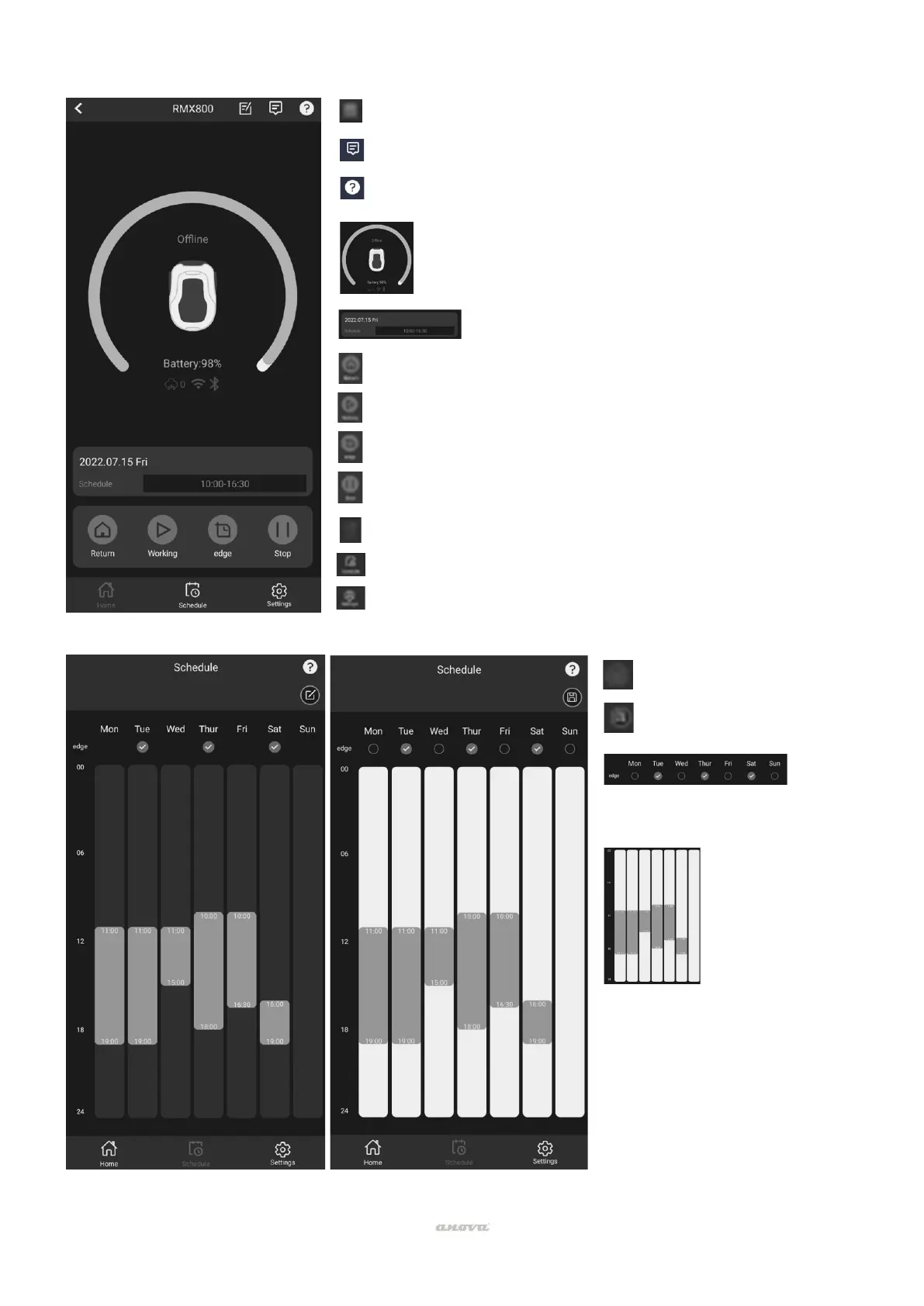 Access to secondary settings: name, starting point, rain delay, Wi-