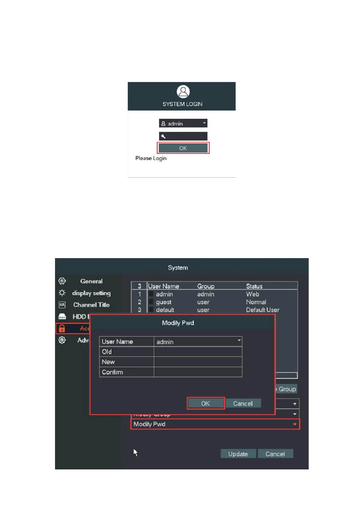 →Modify Pwd and then set a password. password can only be 6 to 12