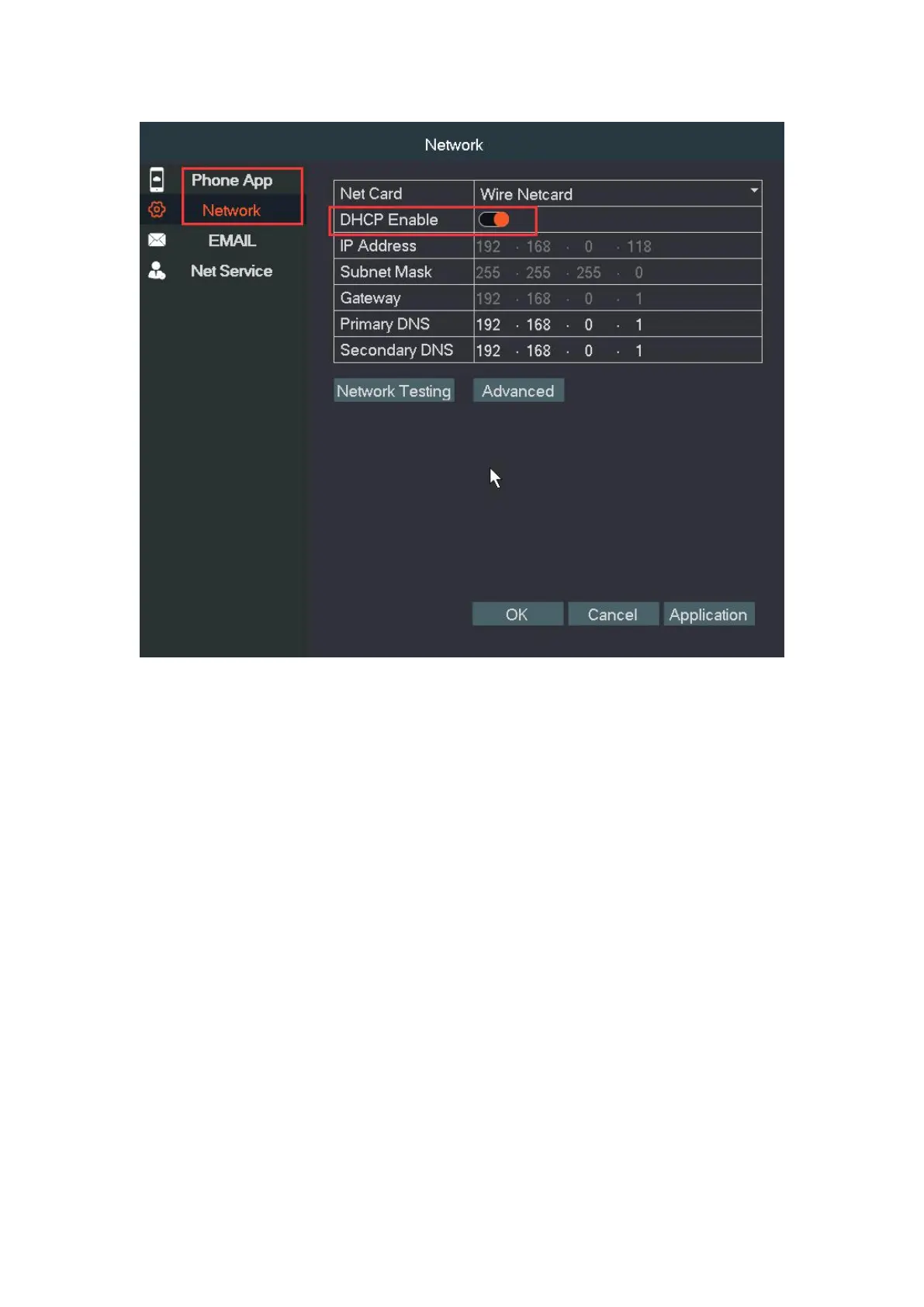 1.Right click the mouse, navigate to Main Menu→Network→select DHCP and click