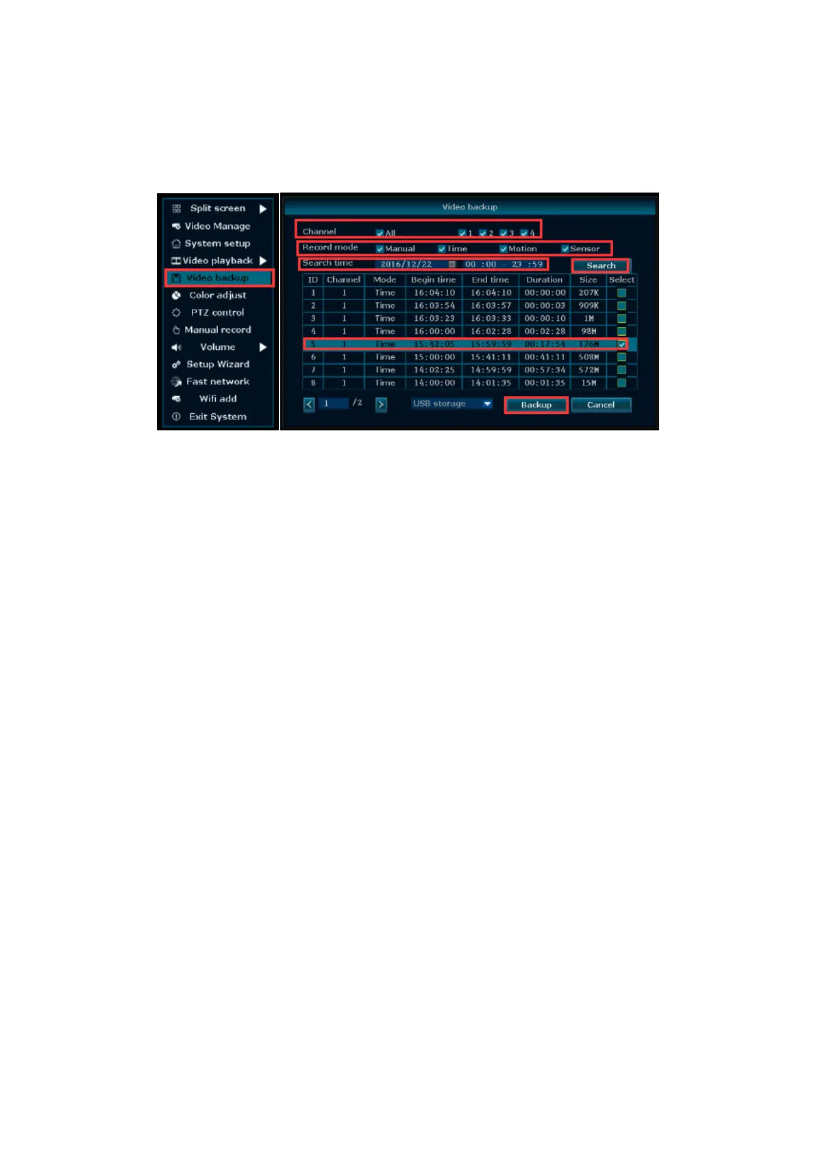 want to backup→Click Backup. Click “Yes” to backup record. Click OK when backup