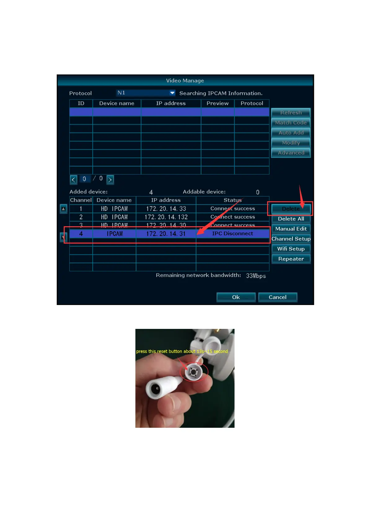 2. Please go to "Video Manage" and delete the "IP disconnected" camera as shown