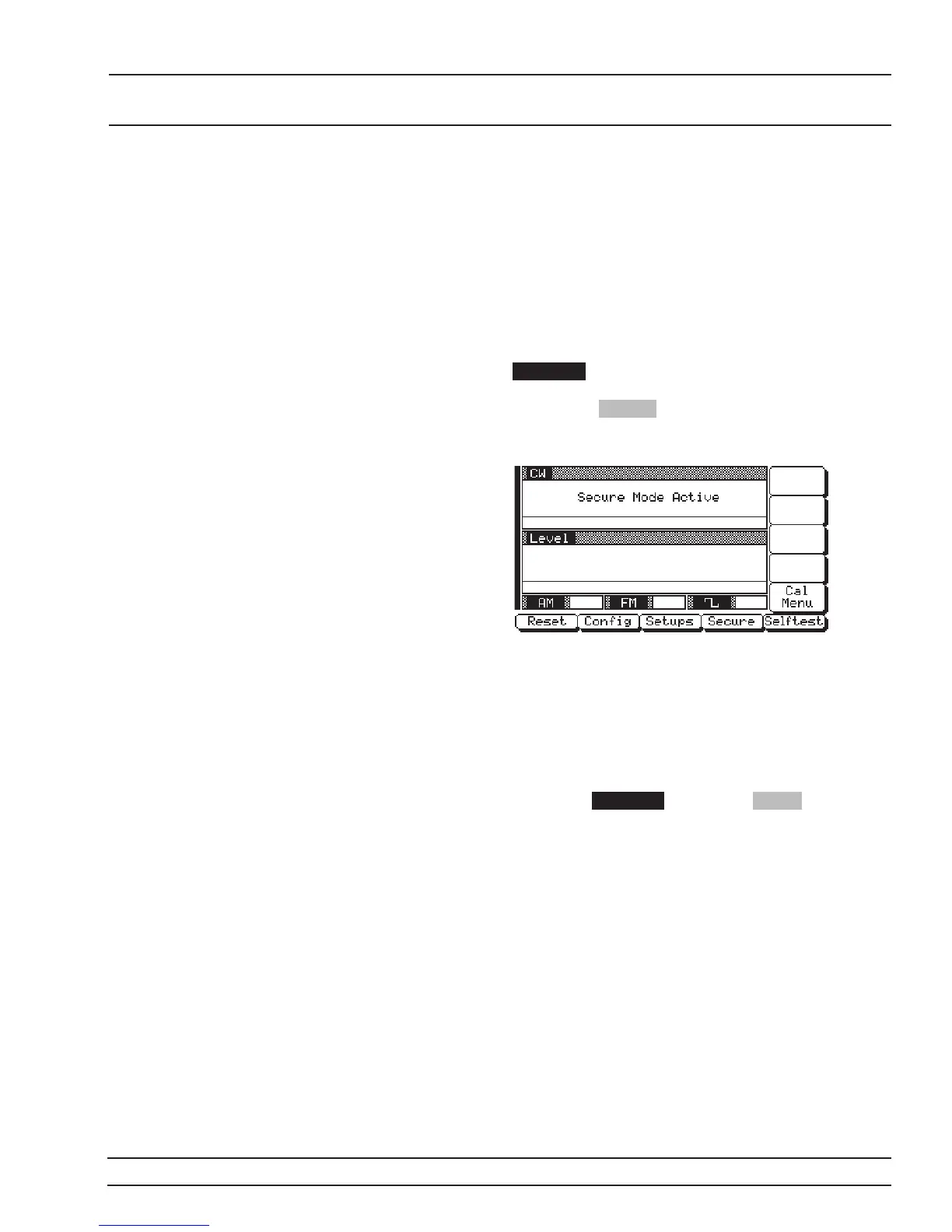 secure mode, the display of all frequency, power level, and modulation