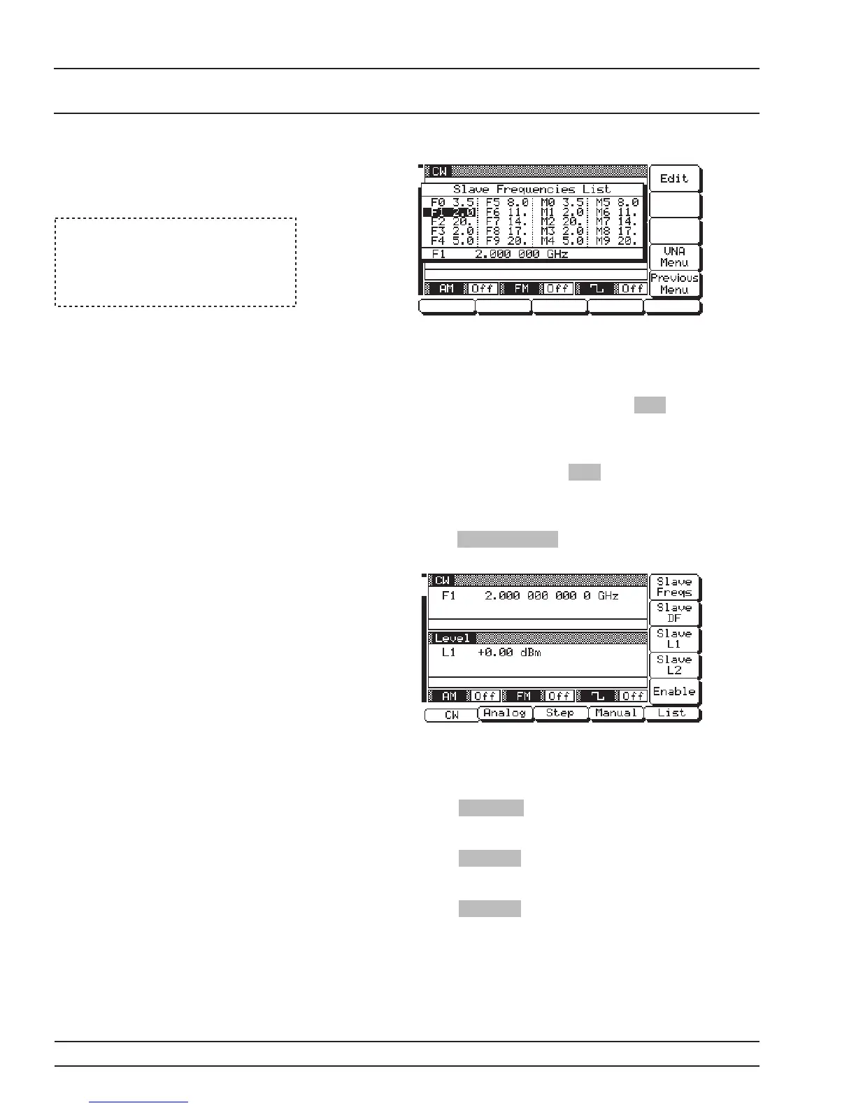 Press Slave DF to open the dF frequency parame