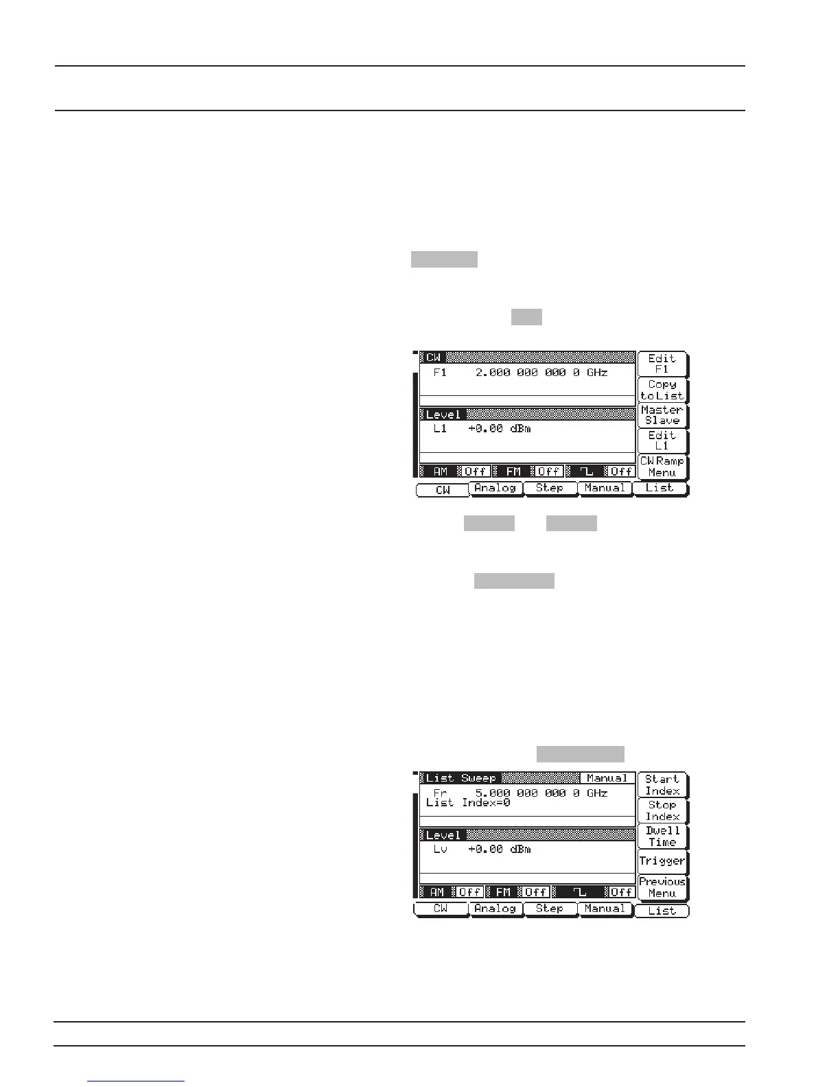 Next, press the CW soft-key. The CW Menu (below)