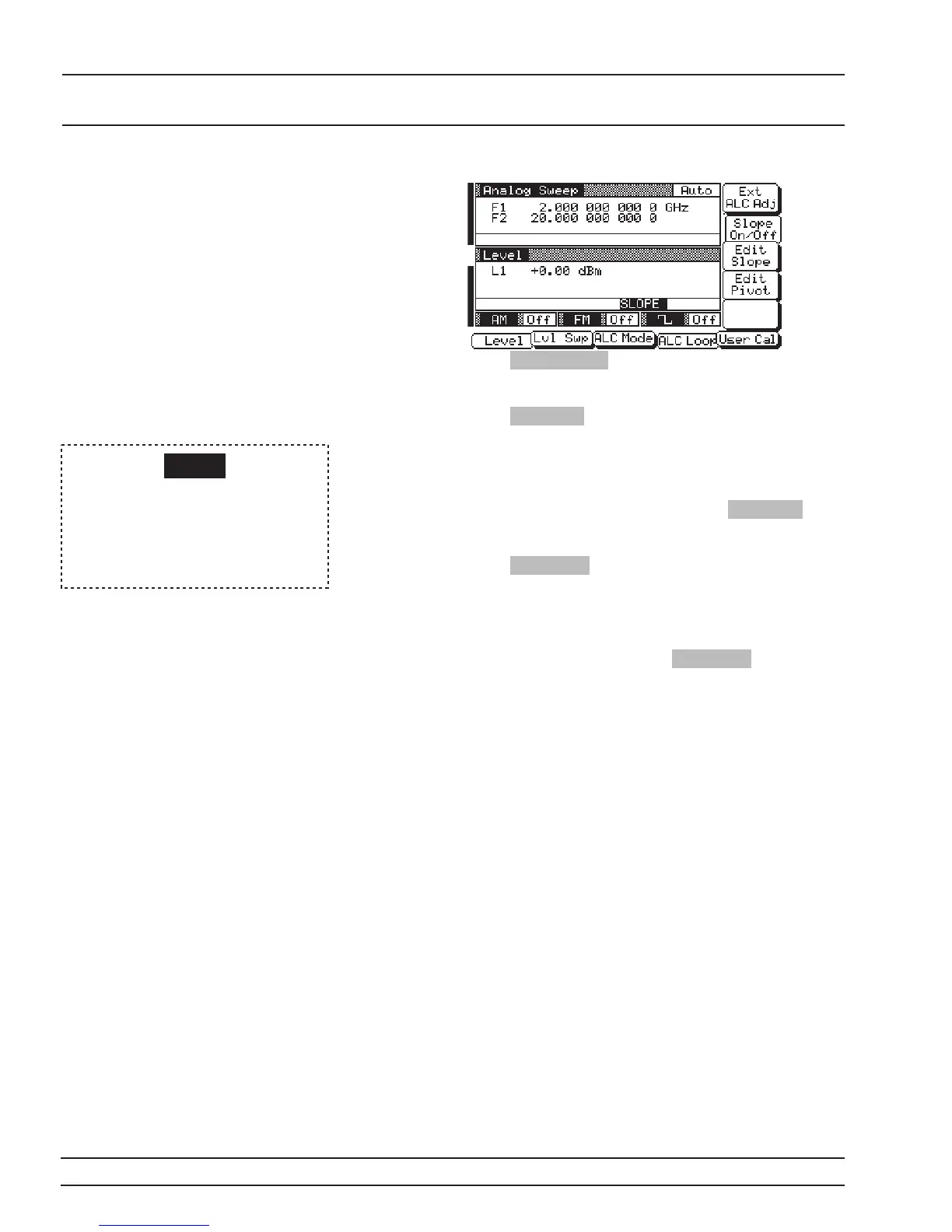 Press Slope On/Off to activate the ALC power slope