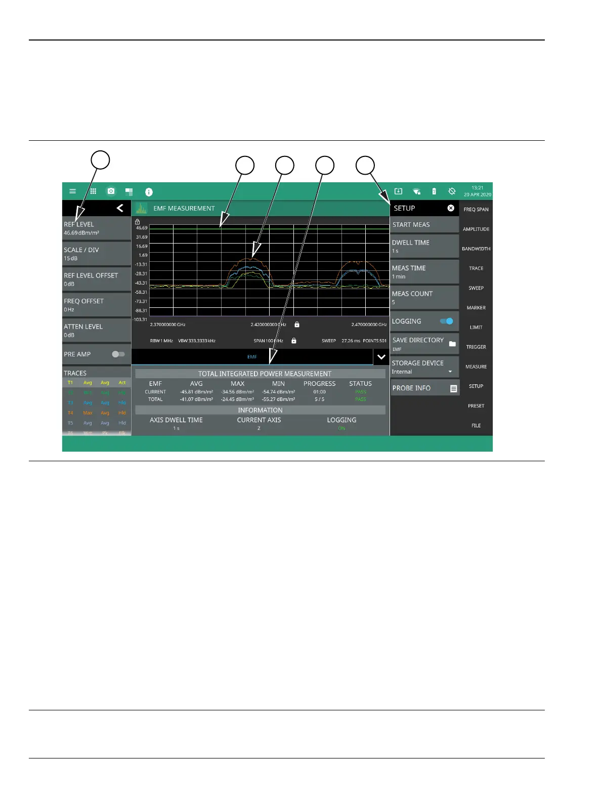 2. EMF measurement pass/fail status uses a limit line for the test criteria. You can use either a custom limit line or