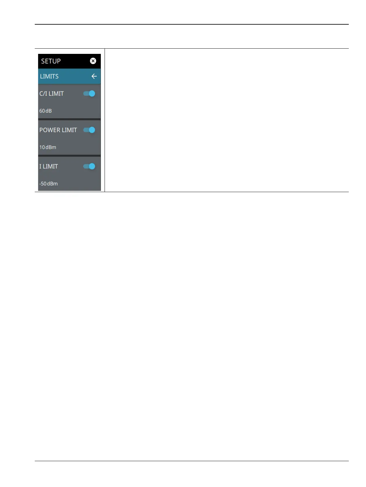 I LIMIT: Sets the desired value of the interference power limit. Enter the desired