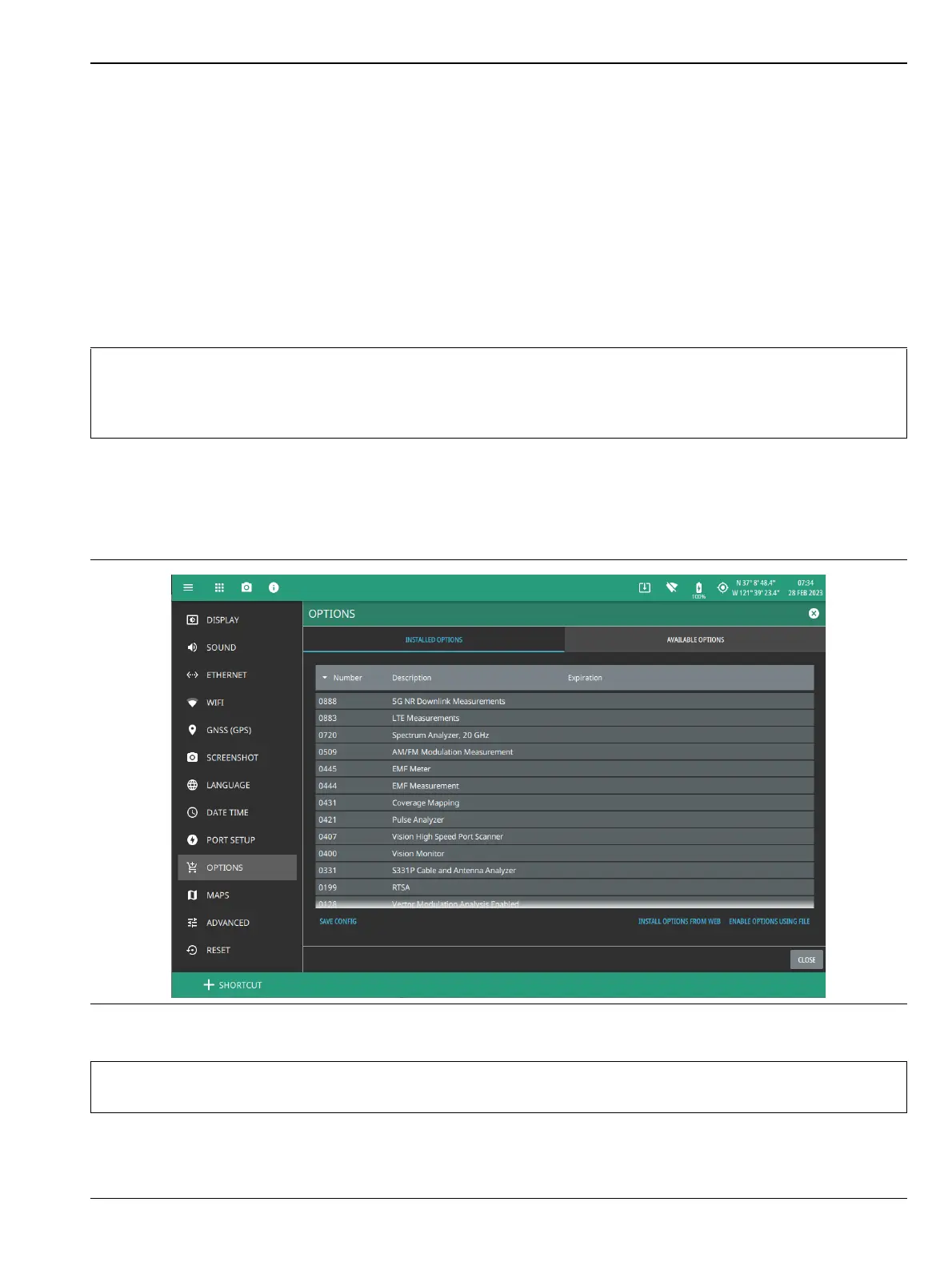 3. Select OPTIONS to view the list of currently installed options in the left tab, and available options in the