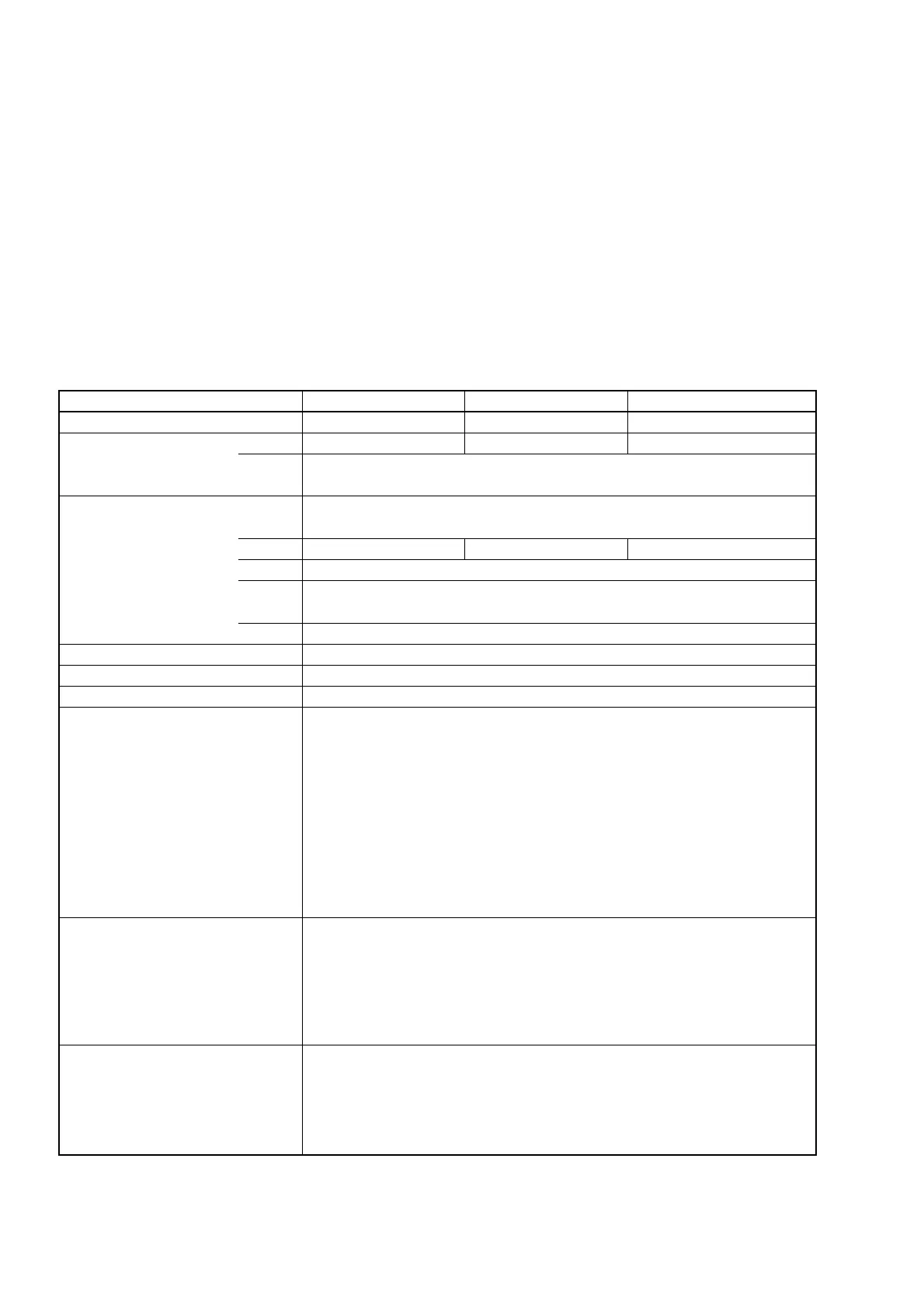 Table 1-6 Standard Specifications