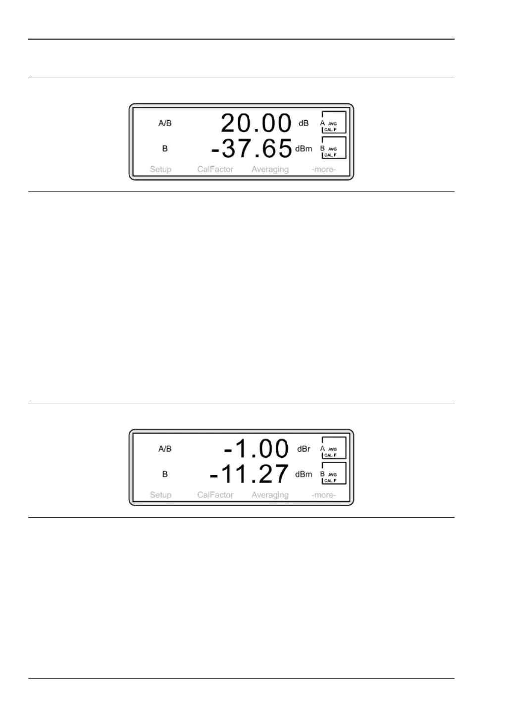 Return the source to –30 dBm. Now set the A/B display of gain to 0 dB by pressing [Channel]