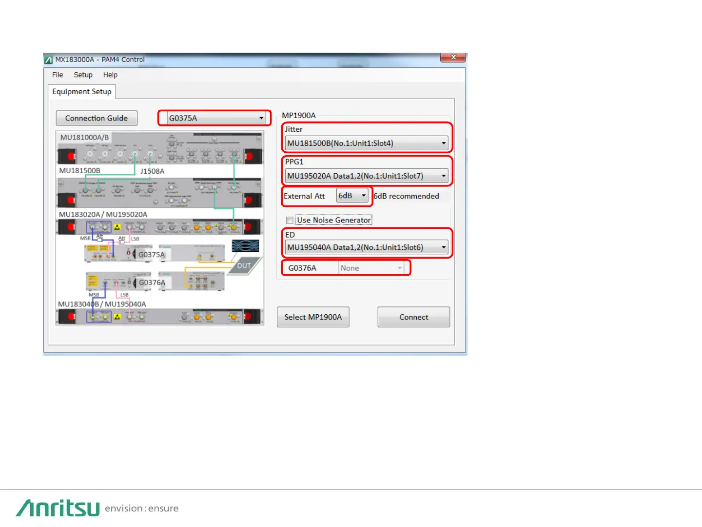 - Set External Att value to 6 dB when 6 dB attenuator is used between PPG and