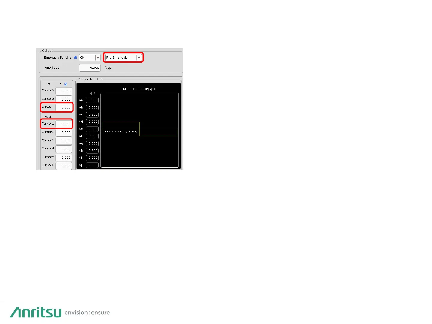 2. Select Pre-Emphasis and adjust Pre-Cursor1 for both Data1 and Data2