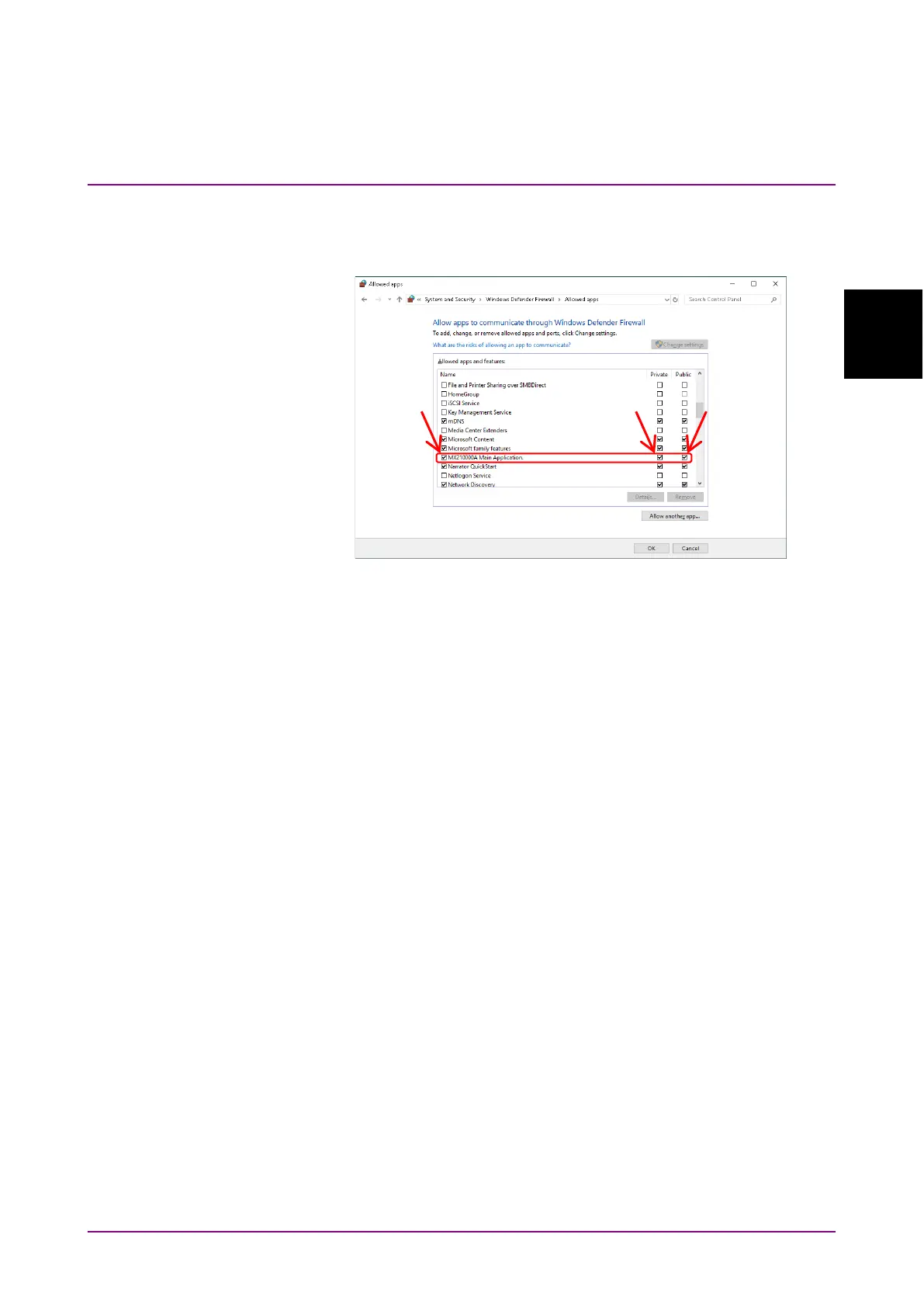 5. MX210000A Main Application is added to Allowed apps and features.