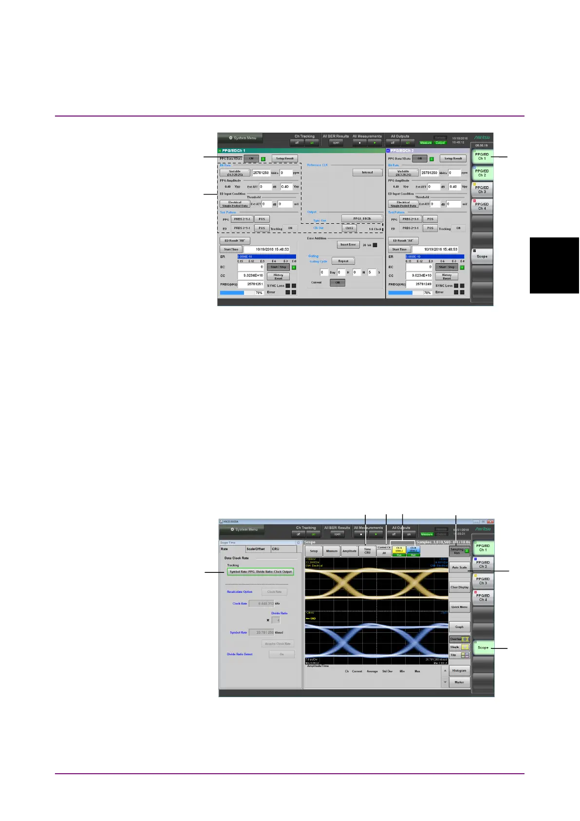 5. Set Clk Out, Bit Rate, PPG Amplitude and Test Pattern. Refer to
