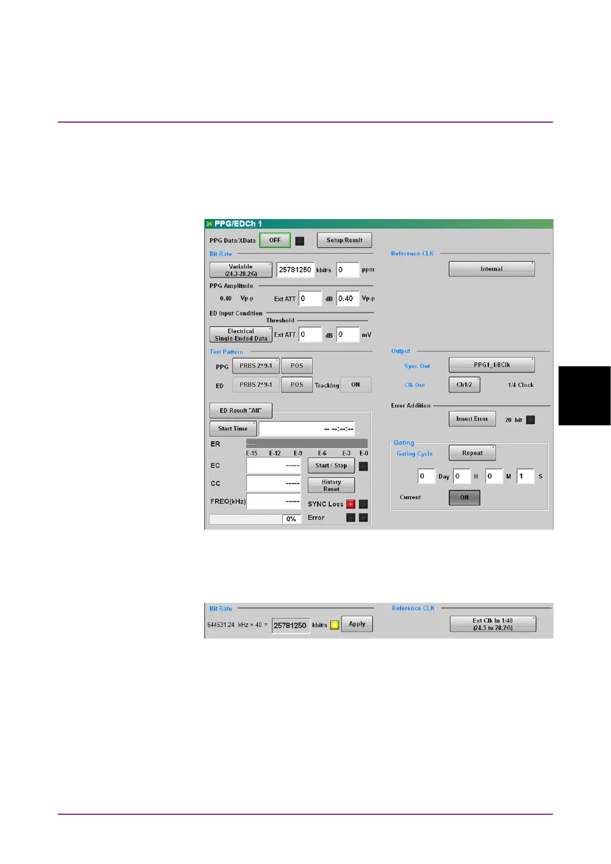 Figure 5.2-2 shows the bit rate display when setting Ext Clk In at
