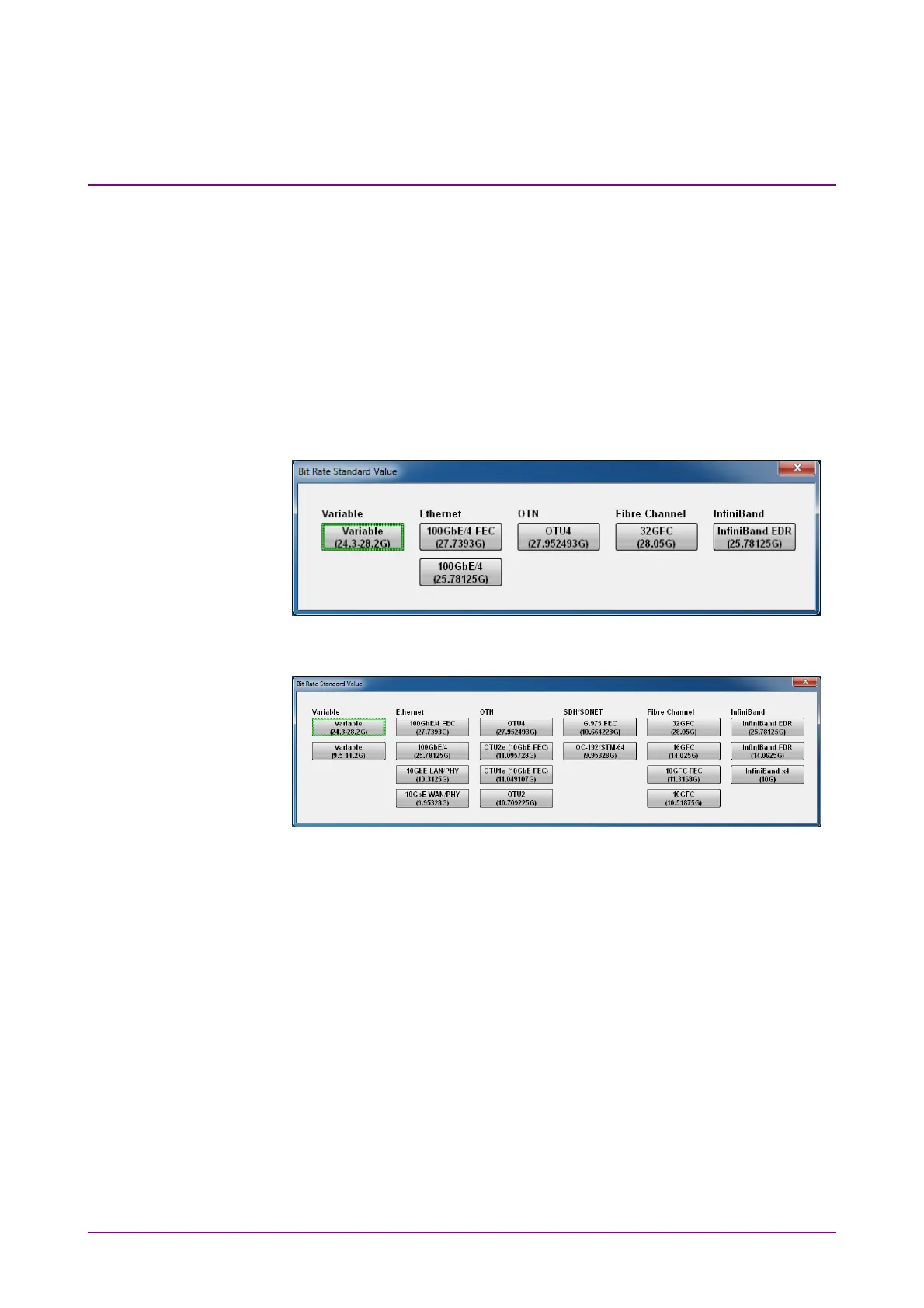 Figure 5.2.2-1 Bit Rate Standard Value Dialog Box (Without MP2110A-093)