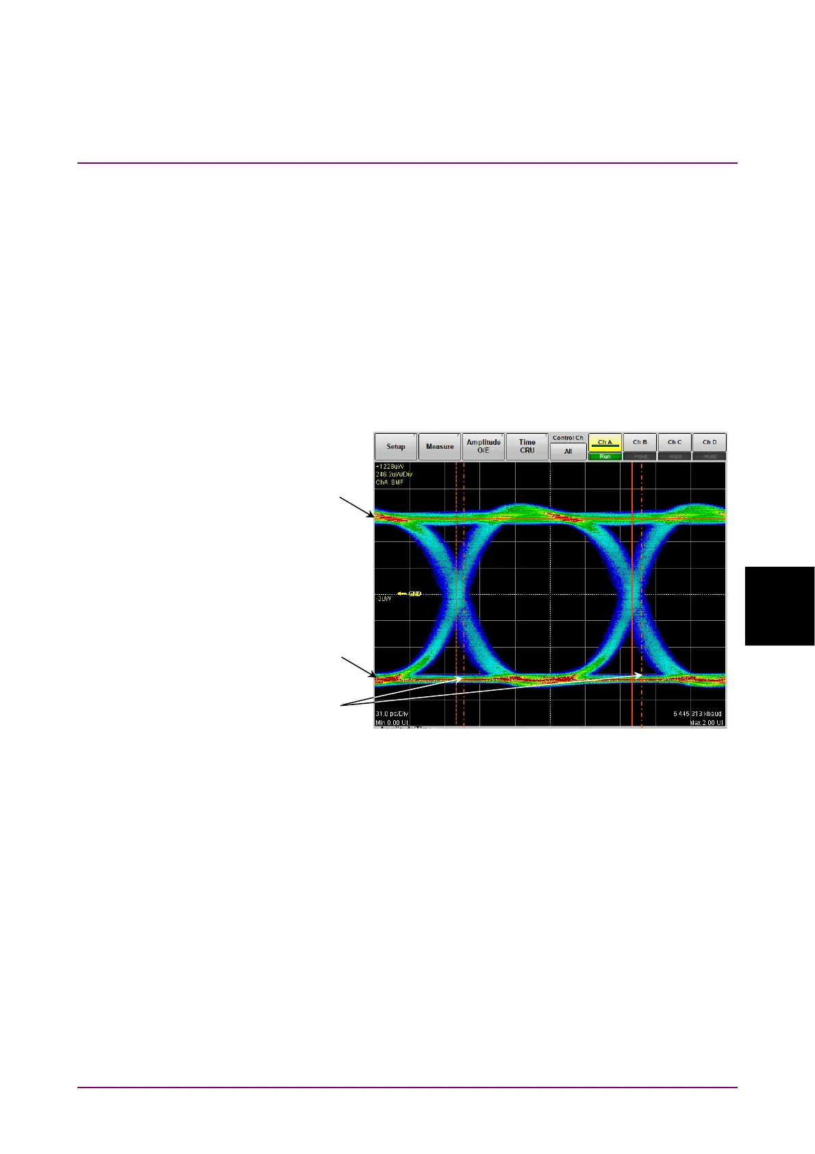 The Eye pattern waveform crossing points are 2.5 and 7.5 scale divisions