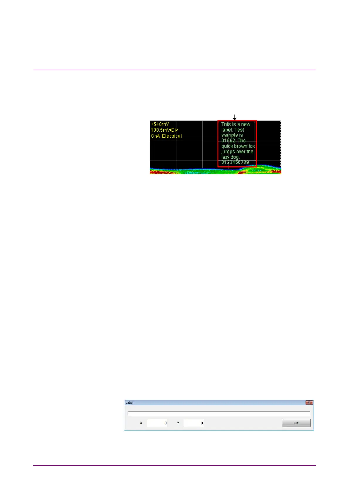 This section describes how to display an arbitrary string (label) in the