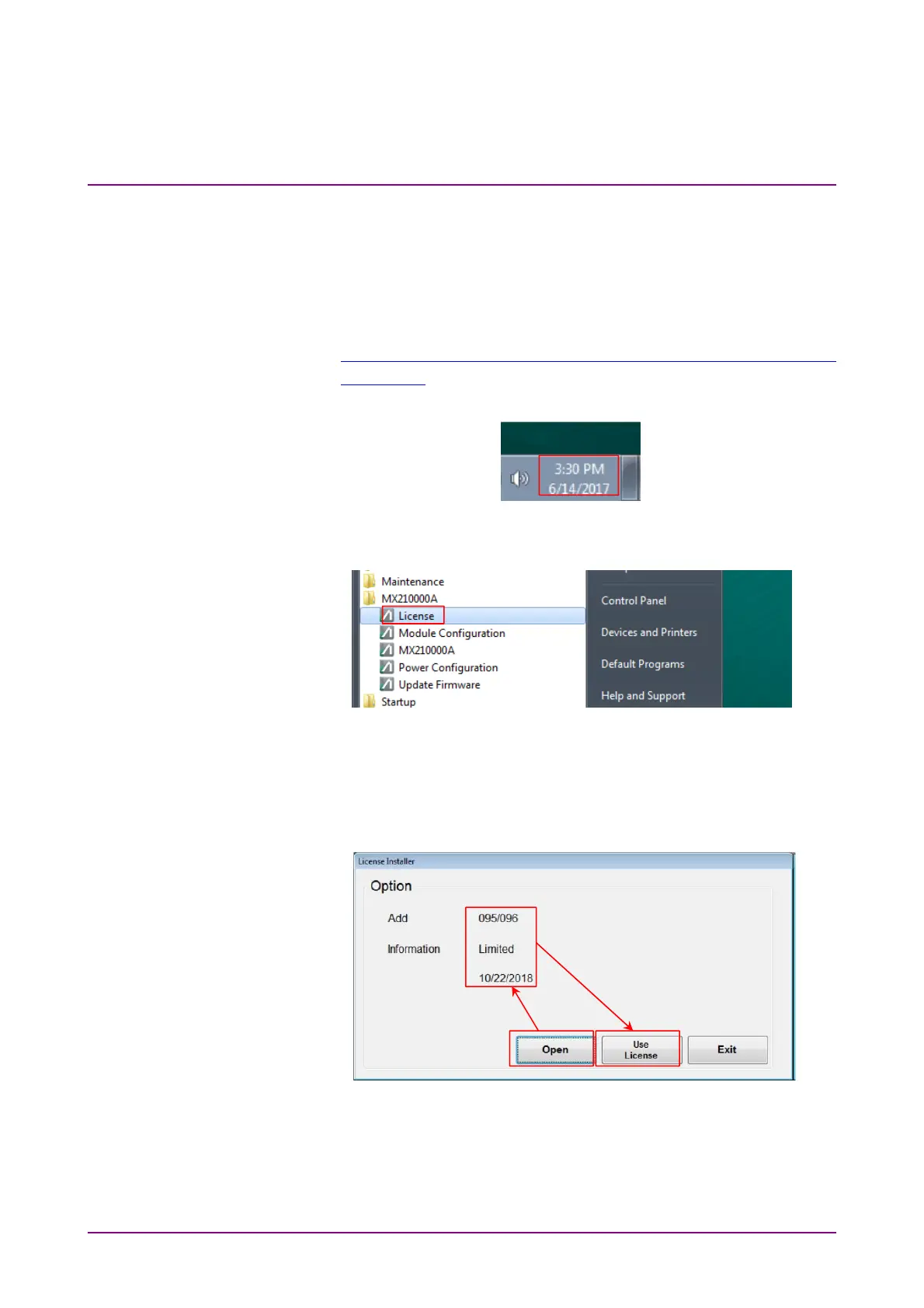 4. Click MX210000A - License in Start Menu.