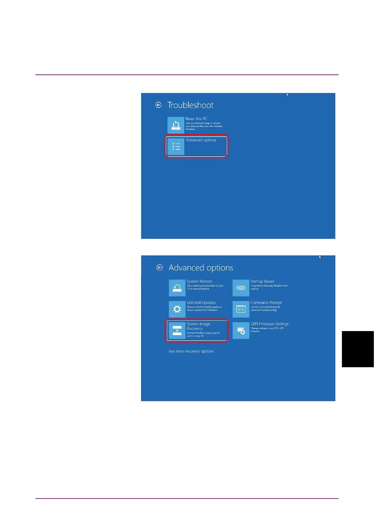 7. In the Advanced options screen, click System Image Recovery.